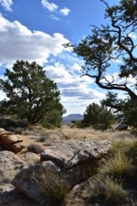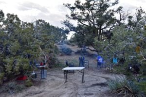 I took another drive around the loop and Bill took another drive around the loop, but we couldn’t find the porthole to the sweet spot, so we wished we could find a great spot without neighbors, with a great view, down an accessible road, with plenty of room, and off we went. Bill stayed behind to keep our space and Tom and I left the campground and headed down Wild Horse Canyon Road in search of options. We hadn’t gone a mile when the truck turned right and up a descent little track we went. We turned left and rose up a steep pitch to arrive at our spot. It was just as we had wished.