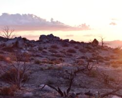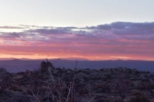 I changed into my SpongeBob bed clothes and slept extremely well. I awoke fresh as a daisy and excited to meet up with Jordan. We had agreed to meet at 11:00 in Cima, or really at the intersection of Cima Road, Cima-Kelso Road, and Morningstar Mine Road, as Cima isn’t really a community any more. After delicious coffee and fire, we headed out about 10:00 and found that, with the sun and the wind, the roads had dried out really well, so not knowing what kind of vehicles Jordan or David were driving, I was confident they would make it into camp. We got to the intersection and there was a huge guy standing next to a brand new Tacoma. I gave him a long look as I pulled up near him. Thank god it was David.