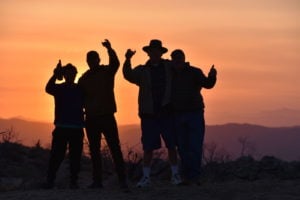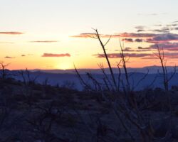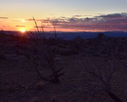 We heard some great tunes on the way back and actually passed one car; our only for the day. With Ivanpah Road closed for the foreseeable future, this far NE corner of the park will become even more remote. We drove up to the rock cabin at Rock Spring so the boys could see. It was great to have all the memories come back as we faced into the breeze and faced back towards where we had left the boys. It was time the make the last run down Cedar Canyon, Black Canyon, and into camp, where cocktails, fire, and dinner awaited.