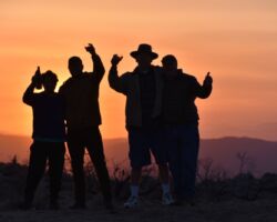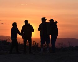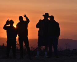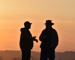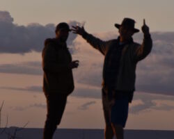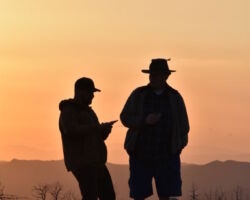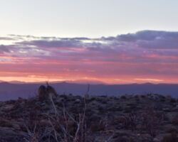 Jordan and David set up their tents and organized their stuff. Jordan didn’t have an ice chest so all his meat and fish were just in the trunk in the grocery bags. We got everything situated on ice and were in good shape by late afternoon. Jordan pulled out a bottle of Bulleit Bourbon that I don’t think left his hand for 8 hours. We had shots and then he and David struck out West, with nothing but the bottle in hand. Tom, Bill, and I ventured up the road to see if there were still people camped and to check out the end of the road. We could see the boys on top of the nipple, 2 silhouettes’ against the distant sky.
