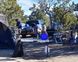 We pulled over to unload ice chests and enjoy a celebratory beverage. It was fantastic to be altogether. It was soon evident that no one planned to journey onto the dunes, so we packed up and headed back up the hill. Everything was present in my truck, and we zipped back up the pavement to our turn off. I followed Jordan in to make sure he could handle to road. He did great; not a nick, scratch or piece of trim missing. He made it all the way in to camp without incident. It was great to be back in camp after a great day, with Jordan and David. It was time to celebrate.