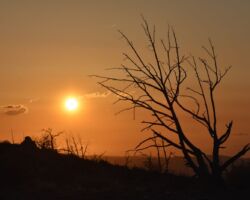 The wind prevented it from being silent, although there were no branches or leaves for the wind to play on. The sound was enjoyable. I strolled aimlessly back towards camp, until cresting a small rise to take a bearing, I realized I wasn’t headed towards camp at all, but rather down the hill to the North. A slight course change brought me to our rigs, the fire, cocktails, and heavier clothes. Tom made these awesome marinated chicken tacos with chunks of vegetables and a delicious yogurt-like dressing, like a Tzatziki sauce and some shawarma rice. What a great meal. We had a fairly large fire as Bill voided our discretion protocol and began hauling large trees right into camp. It was our duty to burn all trace.