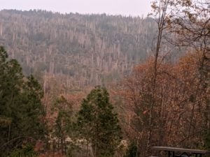 We figured we had to get out of the valley, at least 2,000 feet. I remembered that Bass Lake got high marks from my Tom Stienstra camping guide, even though it was surrounded by vacation homes and had a resort atmosphere to it. Googly shows like 13 campgrounds, the book identifies 5, the forest service has another number, and history tells us it is changing all the time. I was able to call the Sierra National Forest supervisors office in Clovis to get advice on where to go to get out of the air pollution. She was able to connect me to a real nice lady at the Bass Lake Ranger District who had one campground open on Bass Lake but not much else to offer. She did transfer me to another lady at the High Sierra District in Prather who had a couple suggested campgrounds that met our MQ’s, but they were a fair piece down forest service roads and with the other guys coming tomorrow, and some of their reticence on driving distance, we crossed them off the list. The lady did say that even though some campgrounds were closed we could still camp at them, which didn’t sound right. She also said that wasn’t true of others that were near current project work, but who were you going to get a definitive answer on that from?