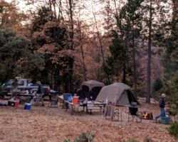 We decided the safe bet was to head to Bass Lake; high enough to be out of the air pollution, an obvious place that would be easy for the boys to find, and with so many campgrounds, some choice for us to find one that best suited our needs. So back we went; down 145 to Road 211 to O’Neill’s, to North Fork Road to Fine Gold and eventually into North Point, which fortunately was the location of the Bass Lake Ranger District. The lady behind the desk didn’t take long to figure out that I was the guy she had talked to before, so we had a good laugh as she showed us the district map. She said that we had a choice of only 1 open campground on the lake, despite showing her the website that showed 3 open campgrounds. It still shows 3 open campgrounds as I write this 2 weeks later.