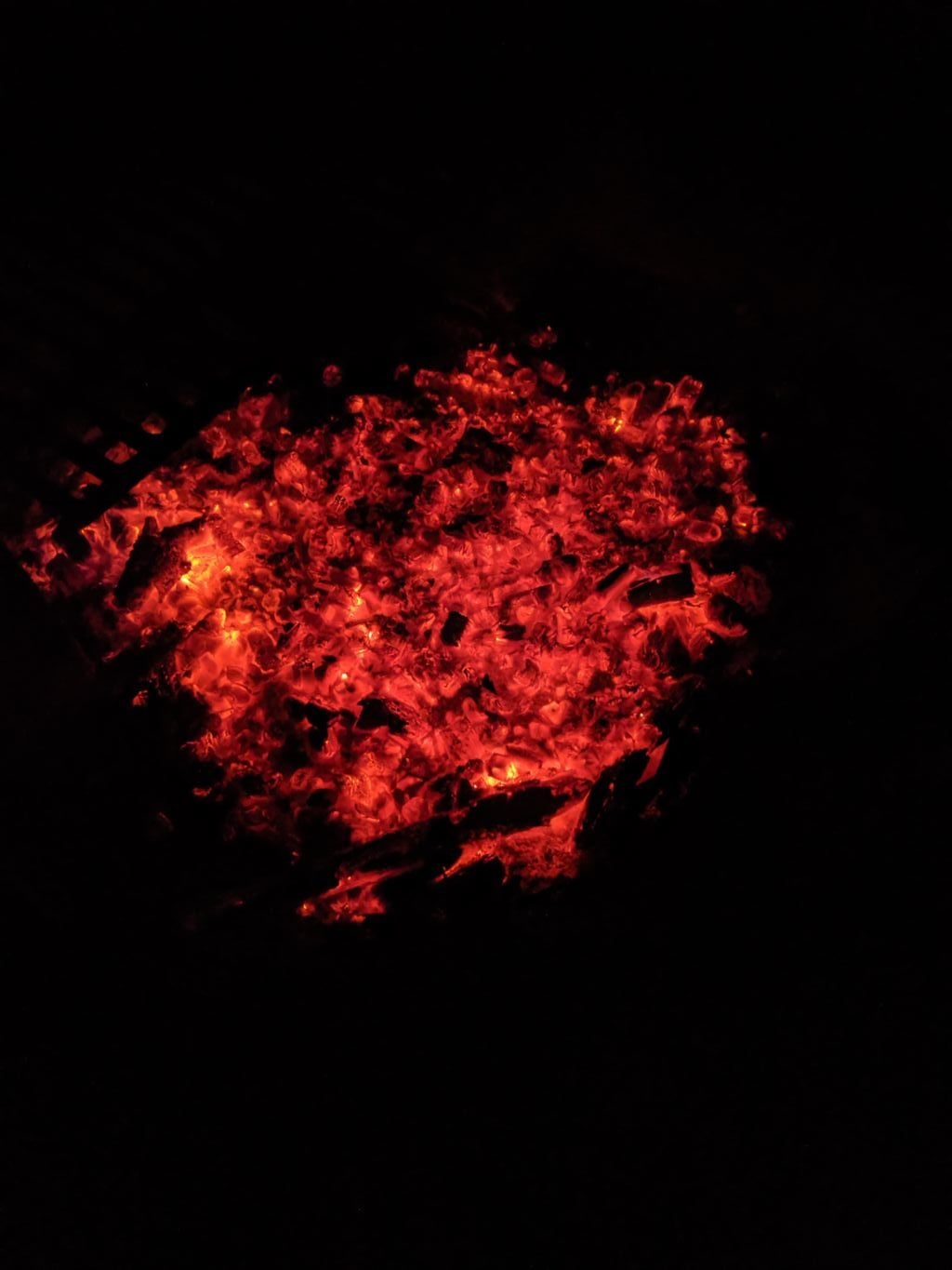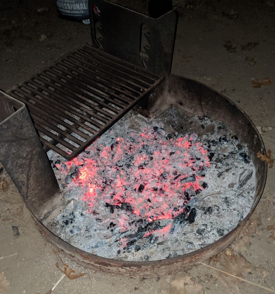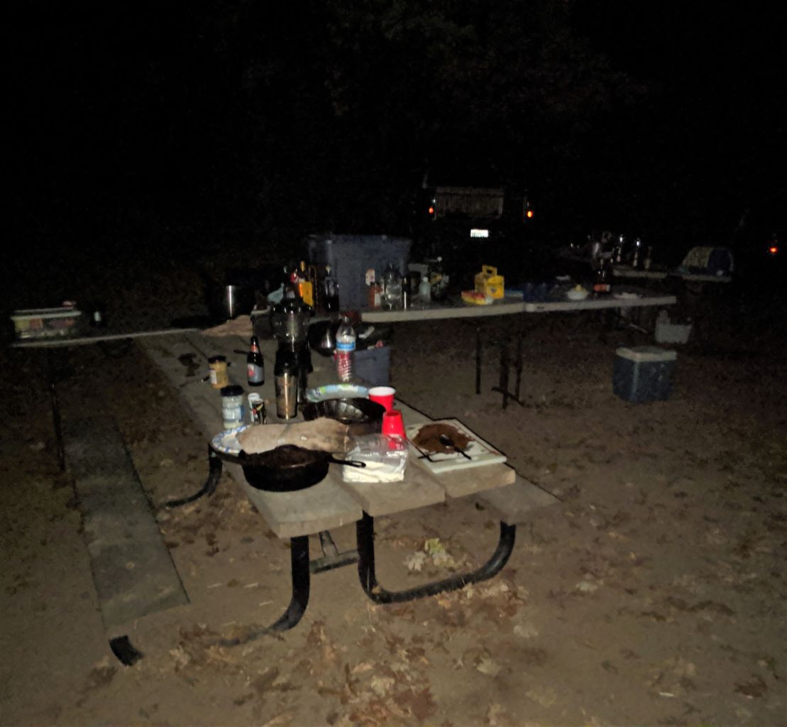 We gathered Bill and occupied our 2 sites and began unloading. The exhausting work called for a break and a beverage so we took the opportunity to contact the rest of the crew to let them know the new plan and location. It was near dark before we got set up and quickly got to fire and food. A white Dodge pickup drove the loop and stopped to ask about paying and site selection and such. Letting him know we couldn’t find anybody or any accurate information, we just set up. He thanked us and drove off only to return and set up camp in the closest site to us just across the road. The entire freakin campground and he sets up next to us. Oh well, I am sure he enjoyed our company.