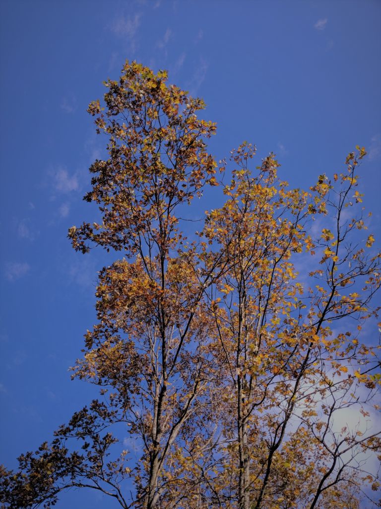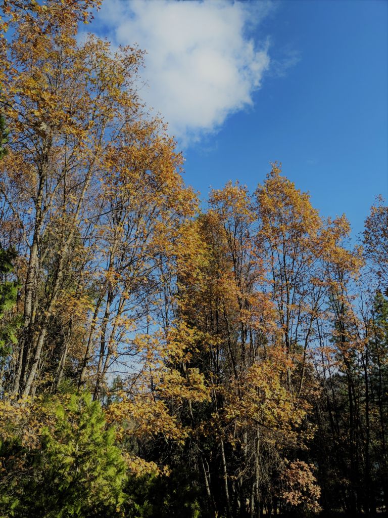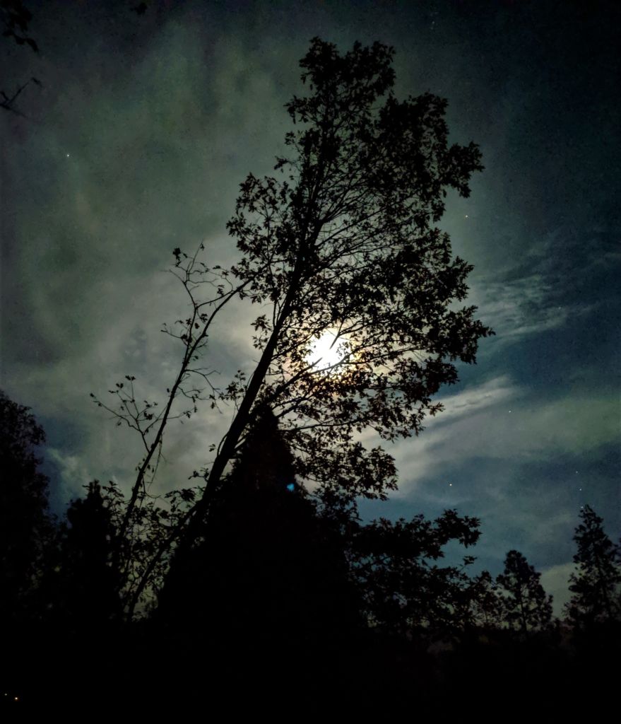 I warmed up some of my chicken thighs I had BBQ’d at home got into some chips, fruit, and snacks, oh and the Manhattans; yes, the Manhattans. Oh my. Food, fire, beverages were all excellent. The weather was great, and although we ended up a stone’s throw from Road 222, there was very little traffic. We could see the lake here and there between the trees. The deer did not seem too concerned with us and we had a gray kitty visitor as well. My bed was excellent and I slept great until the rudeness of the wee hours. Our neighbor decided on an early departure and as most moron campers, he set his stupid fucking useless alarm off. Once awake, I notice the traffic noise was quite substantial. Much heavy equipment, trucks, and massive dumpsters hauling brush and tree residue from all the tree removal. Oh well, time to rise and shine.