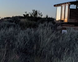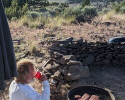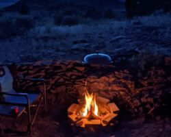 Soon it was time for a nap and I snoozed for a couple hours. I had a great nap and awoke to the slightest pitter-patter of a slight drizzle; hardly enough to wet the ground, but enough to sweeten the sage and provide an olfactory treat. Upon awakening, it was found to be cocktail hour, and I prepared for a repeat of the previous night. No massive screamer, but I saw 7 shooting stars. Some may have been said to be “falling,” but I am not sure I know the difference. After the free lifetime subscription to Sirius went to bed, I hooked up my tunes and had a great little fire. It was a great night.