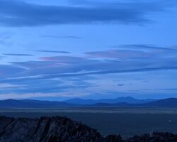 I was feeling great from all the activity and from being clean, so I settled in for the long haul when Mike went down. I went off the pee and saw the second best shooting star of my life; and huge, glowing green ball with a huge tail crossing a huge swath of the sky. It was barely dark and this thing glowed like an emerald. The only one that surpasses this was a very similar green screamer I saw from my backyard in Carmichael a few years back. Very similar in size, brightness, angle, tail, etc.; even the early time of evening was the same. I got a fire going and melted into the vibes, tunes, stars, and beverages.