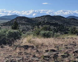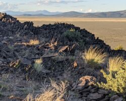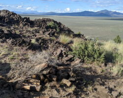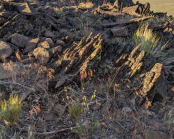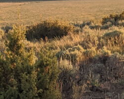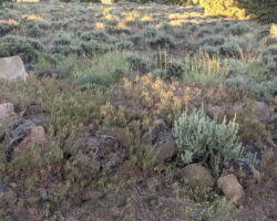 We soon realized this was going to be a job. The weather was great; not hot with a nice breeze, but the fencing was alternately buried in the ground or grown over by sage. We soon needed the axe to break off stout branches of sage to allow us to pull out the wire. Often times where the wire was buried, it rusted enough to break, so we found numerous sections that had varying numbers of strands. We would free a significant stretch of wire and then lift it over the sage to get it out nearer the property line as we saw it. We made it down most of the way, just about onto the flat ground at the bottom, when a white pick-up appeared on the road.