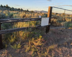 I got up to Chester without incident and was gaining confidence. This was by far the slowest I had driven, but I was still on schedule. I had reached out to Bruce a couple times by phone and text with no response, but I assumed he was on his way too. I finally heard from him about 11:00 and he was a few miles East of Susanville. I was a few miles West so I waited for him at 139. He followed me out to the property where we found fence Dale, his buddy and worker Martin, and his 2 sons and three dogs all talking to neighbor Dale. The fence was in alongside South Grasshopper Rd. and along the southern boundary road. It all blew my mind.