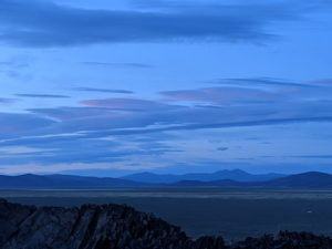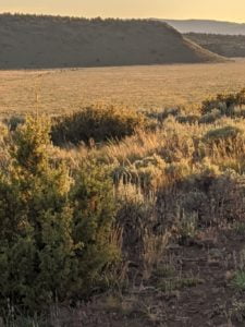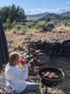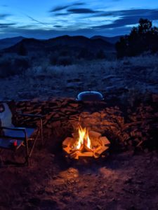 Soon it was time for a nap and I snoozed for a couple hours. I had a great nap and awoke to the slightest pitter-patter of a slight drizzle; hardly enough to wet the ground, but enough to sweeten the sage and provide an olfactory treat. Upon awakening, it was found to be cocktail hour, and I prepared for a repeat of the previous night. No massive screamer, but I saw 7 shooting stars. Some may have been said to be “falling,” but I am not sure I know the difference. After the free lifetime subscription to Sirius went to bed, I hooked up my tunes and had a great little fire. It was a great night.