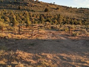 I got up to Chester without incident and was gaining confidence. This was by far the slowest I had driven, but I was still on schedule. I had reached out to Bruce a couple times by phone and text with no response, but I assumed he was on his way too. I finally heard from him about 11:00 and he was a few miles East of Susanville. I was a few miles West so I waited for him at 139. He followed me out to the property where we found fence Dale, his buddy and worker Martin, and his 2 sons and three dogs all talking to neighbor Dale. The fence was in alongside South Grasshopper Rd. and along the southern boundary road. It all blew my mind.