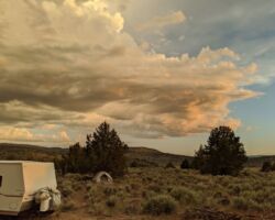 I didn’t receive a drop of rain, yet I could smell the sweet sage on the winds from afar. The orange crescent moon set so peacefully in the West. The stars that at earlier were only visible to the West, were now screaming from every direction. The sky seemed extremely clear, perhaps having been dusted clean from the tremendous winds. The Milky Way was almost touchable. This night’s sky was one for the ages. Sleep came slowly having been filled with so much energy. It was still warm, even humid perhaps, but I was happy to relax knowing the storm had passed and ecstatic at being treated to such a spectacular show. The wine, the tunes, the sounds, smells, solitude. It was a great night.