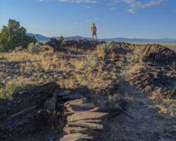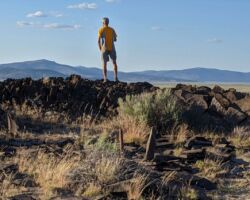 We realized we were a little close to the edge for the slide out so we made a few runs at situating the trailer perfectly under the cover. Now, it was clear, more rocks needed to go to be able to pull out. So it would be. All the little stuff and sage went easily, the basketballs less so, but with a reasonable amount of effort. Finally, it was clear we would not avoid the monster; it had to be confronted. Harkening back to our morning exercise, we began excavating the perimeter. The digging wasn’t especially difficult, but with each round of pick and shovel, it was becoming increasingly apparent the size of the beast. She was a biggun.