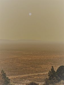 Bob heated up some pasta and we listened to some music for a bit and headed off to bed pretty early. No stars, no moon, no clovers. As with most fires, the cool temperatures and higher humidity of the night calms the fires down and therefore, release less smoke. In the morning however, when it warms up and air currents begin to move and the air gets drier, fire activity increases and the smoke generated increases. So it was all around us.