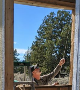 I had picked up some 4×6 for the water tower and a bunch of trim for the cabin, so along with the 55 gallons of water I hauled up, and all the tools and parts, and pieces that always come, I again had a full load. I didn’t leave super early, and with no traffic or construction along the way, I was up top about 1:00. I had begun to unload and Bob pulled in, and it seemed like only a few more minutes and Mike arrived, so I was very relieved we were all up top and accounted for.
