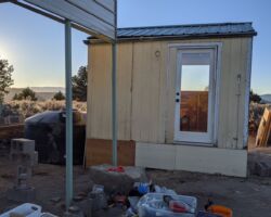 I typically feel really good up there alone, but I was still adjusting to the unexpected departures. I plugged along and hammered out more trim, readjusted the gutter on the South side, and rolled the water tank into place. I didn’t stop working until about 6:00 so I took a cold rinse from the barrel in the back of my truck and had a sandwich for dinner. I bundled up, not wanting a fire, but staying up for the end of the ballgame with pie and Snickers. It was another amazing night of stars of planets, and satellites, and asteroids. Sleep was exceptional.