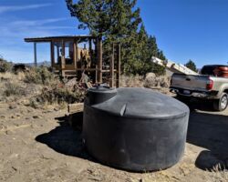 The early morning was the typical cool and calm we have almost every morning, and after coffee and a little breakfast, we got to it. I was excited for the arrival of the second water tank from the Tractor Supply in Redding, and right on time, he called to say he was at the intersection. We had a smooth transition into the bed of my truck and Jimmy was off, back to Redding and I was rolling up the hill with our second water tank. It was very exciting.