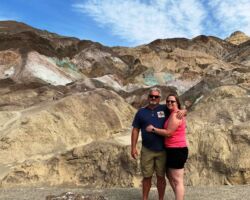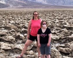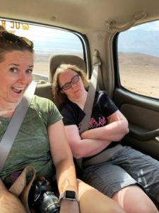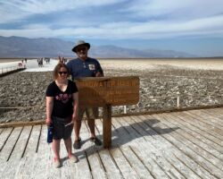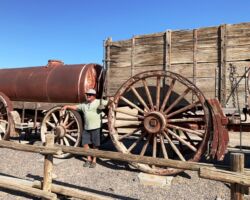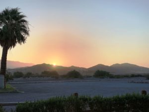 We squeezed in a quick swim at the pool at the Ranch before heading back to H&B’s camp site for dinner. Another great night, dampened only by the thought of it being the last one. Beth did really good with all the traveling and the camping. She got a Death Valley shirt which made her happy. We headed out highway 374 East over Daylight Pass, past the turnoff to Titus Canyon and Ryolite into Beatty for gas. We didn’t want to deal with all the forest fire smoke along 395, and were very pleased to be out of it for the ride home.