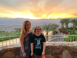 We wandered over to the golf course shack to have a couple cocktails and ponder our existence. It was beautiful and great to be together in Death Valley. We made plans to meet at the restaurant for dinner. When we arrived, Brett told us a friend of his was actually also here, out of the blue, so we met Evan and his girlfriend Lauren in the courtyard while waiting for our dinner reservation. The place was a madhouse and we had to ask about our reservation several times.