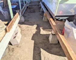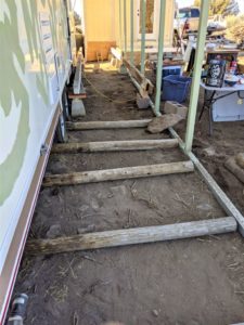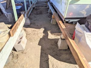 Suddenly, Mike had a counter proposal. Rather than leveling the deck, what about raising the trailer. It seemed like we were always 1.5” off. If we went around the trailer and placed another 2×8 piece under each block currently supporting it, we could be in business. I just about lost my shit. I did not want to start on an entirely new approach, that was not simple nor easily achieved, and I was not convinced that it would solve or even reduce any of the work with leveling and piers and such we were trying to do just with dealing with deck heights. We discussed this new approach for quite a while, and eventually agreed not to pursue it.