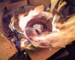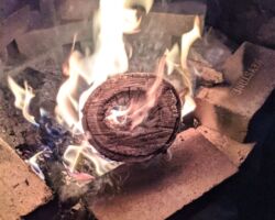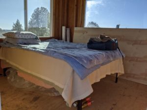 I cut up Brussels sprouts and turkey bacon and got that going in the cast iron. Mike still couldn’t get his magic radio to work up there, but it was OK. The talk of the day, the smells, the sounds, the good vibes carried the evening. Mike retired shortly after dinner and I dumped the coals into the fire pit and got a rager going. The fire felt great. I couldn’t last until the fire died down, so I doused it and put the lid over it. I slept well for the first time in the new bed with the nice headboard. No middle of the night poopy and many good dreams.