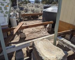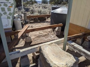 We decided the trickle of water was too slow, or we too impatient, so I attached my pump, but we couldn’t get that primed. I couldn’t even suck water through the hose to get a flow. It was really strange. So we just said fuck it and opened the valve and flooded the whole area. Of course, now there was way too much water, so we re-attached the hose to direct it down past the trailer, and that seemed to work, slowly, but steadily. With that, we were just about out of small jobs, and it was getting close to noon. Mike helped me load all the materials we had brought up from the boneyard for the skirting back into the truck and we brought it all back. With that done, Mike closed up the trailer, finished packing, and headed on down the hill.