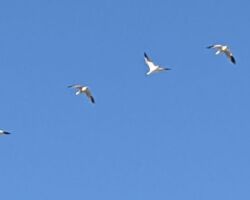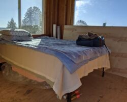 I was heading North on 395 by the time to sun came up so I avoided the brightness blazing into my eyeballs. I didn’t get hassled by the Feds at the border crossing, and was getting gas in Standish when it was still early morning. I was pulled over to take a leak and began to hear a growing level of squawking and cackling. It continued to grow until I could make out the distinct sound of Cranes and then see the massive lines or formations coming right over me. I was stoked and took it as a good sign. I was unlocking the gate by 9:00 with all parts intact. The road was much better, i.e. drier, as was the top around the trailer and cabin. I was barely done poking around to say hello to everything when Mike pulled up and there was much rejoicing.