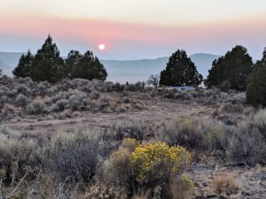 I was relieved to see everything in its place, after having to wrestle a little bit with the lock on the new gate. It is in the perfect location, looks great, and seems like it will serve its purpose; its just that you need tiny baby hands to get up in the box and work the key and lock. It was afternoon by the time I was unloading, and felt no need to push into a project, so I took my time unloading and organizing for the projects, and relaxed a bit on the kitchen deck. The weather was perfect and the smoke minimal; just a slight low laying ring around the valley. I still couldn’t see the Warner’s, but I imagine next time for sure.
