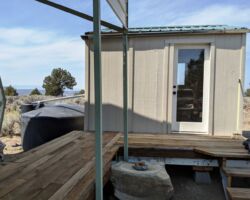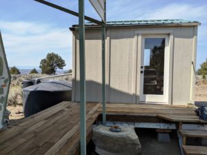 Much of the problem was continued worry, fear, and loathing about the trailer. I decided I couldn’t do it, but I dreaded calling Big Mike and telling him. I again was excited to get going on a long list of projects before I left. I was up early and visited the shitter. I took the opportunity, while there, to put some water in the hole to help stimulate some microbial activity. I continued on down the road to hide a gate key. I hooked up the downspout of the cabin gutter to the water tank, then I hooked up the gutter from the kitchen to that water tank. Although we had missed out on some rain, we were now ready to catch any subsequent precipitation coming our way. I taped and re-taped all the fittings for the kitchen tank to stop the small leaks from the valves. I counted and measured the spacing in between the studs in the cabin to help get an accurate assessment of the insulation I will need.