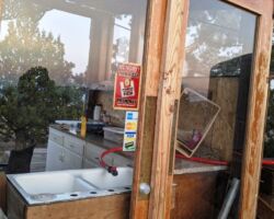 Two trips prior to this one, the counter and the sink were covered in mouse poop. It was way too much. As it is, the drawers and the cabinets have plenty, but at least it is behind closed doors. I was determined to help the snake, fox, and other predators thin the mousy population. My uncle Gil had for years operated a squirrel relocation program at his place in Napa, so trapping crossed my mind, but I wasn’t around enough for that. Poison, sticky paper, and snapping their necks didn’t appeal to me, but somebody had to do something. Perhaps intensive training or an intervention. The last trip, it wasn’t so bad, but I now wipe down everything before I unload.