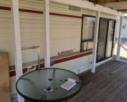 I found the trailer and had just barely gotten up to the porch when another truck pulled up. Half expecting this, and remembering my altercation on Orange Ave. down from Vinny’s place, I remained calm and collected. He turned out to be a neighbor and friend of Dale, the owner of the trailer. He had considered taking the trailer to his lot at one point, but decided it was too big a job for him. He also does some maintenance and repairs for him. He was quite the chatterbox, as it appears many of these folks out here are. He really reminded me of my dad and sure enough, he eventually said he was a banker and had worked in the City.