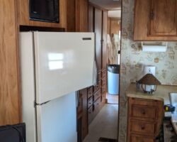 When I told him about dad, he said they used to refer to B of A and the “dago Warehouse” which cracked me up. He immediately apologized thinking I may be a dago, my dad having worked there and all, but we were good. He helped me measure and I helped him measure, and he told me all about his thoughts on the project. It was super clean and very well cared for. I was really surprised to see it was much newer than I had expected based on the video I previously saw. The inside layout was perfect, with a bedroom on one end and sitting/sleeping area on the other end. Narrow galley kitchen and bathroom in the middle.