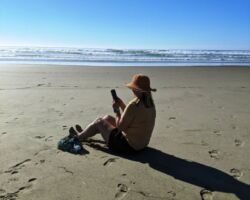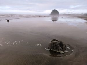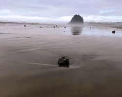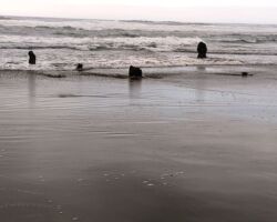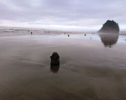 This was reward enough, but we still hadn’t found the “Ghost Forest”. We took our shoes off to cross over Neskowin creek in the middle of the beach and walked South where I recall the ancient tree stumps were. We eventually saw them in the growing dusk of the long day. There were hardly any stumps left, nothing like the picture I saw from some distant time, but it was still very cool, and I was super happy to have found it. We stayed on the beach quite some time, barefoot in the surf, taking lots of pictures, and enjoying another awesome day on the Oregon Coast. This was a special spot.