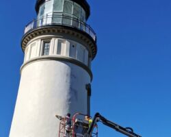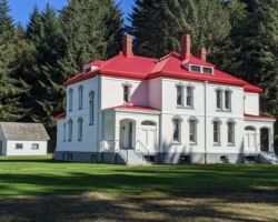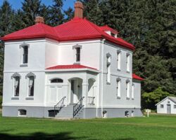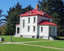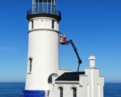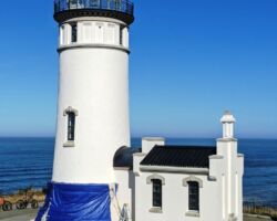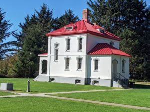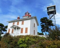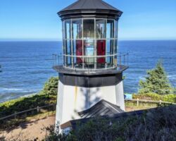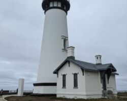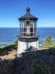 We talked and laughed with her for quite a while and in so doing, learned this was the only lighthouse on the Oregon coast that is made of wood, and that has the living quarters and the light in the same building. Next to it stood an electronic beacon tower that we learned is continuously staffed by the US Coast Guard, the modern day version of our antiquated lighthouse system, although not a whole lot different considering a couple people are still sitting up in a tower on a bluff staring out to sea.