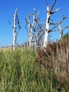 Cape Lookout was no exception. The reservation system does a good job of giving you a picture of each site, so you have a pretty good idea of what you are getting. We also go in October, well after the crowds and so typically have a choice of decent sites, rather than the ones next to the toilets, host, or dumpsters. Our site was pretty much as advertised, although I couldn’t help look around at options a little bit.