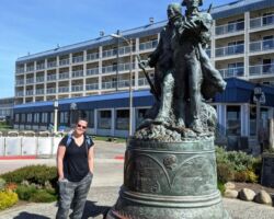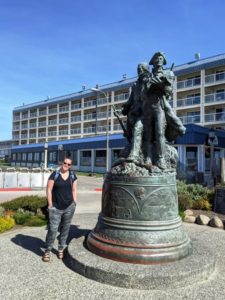 I have read Undaunted Courage and watched my share of movies and documentaries, so I was super excited to get some more historical on-the-ground context. Unfortunately, our first stop was Seaside, the Wally World of the Oregon Coast and ugly American/Euro-trash tourist bus must go. It was harsh. A carnival of crap trinkets and crap food and every form of general crap that could be sold. Allegedly, there was a statue of L&C that I wanted to see, but as with every virtual reality Disney, Studio City, Vegas, Funderland kind of altering of the senses, this statue claimed to be the “End of the Trail”, which, of course, it was not. Making haste out of this realm, we went to the nearby L&C Salt Cairn Historic Monument. It is a weird site surrounded by homes in a modern neighborhood is this 30’x30’ wrought iron fenced off display of a 4’x10’ pile of rocks with 5 copper pots on top.