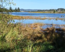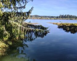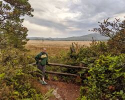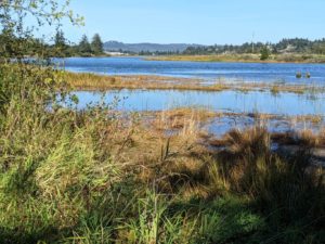 We took a nice couple mile loop trail through forest, and meadow, and finally along Sand Lake, another of those Oregon coastal oddities; uncertain if it is bay, river, marsh, wetland, estuary, all completely impacted by the tides, they are of immense beauty and tranquility, especially in the calm, cool, misty early morning. Despite not knowing if we were on a trail, or on the right path most of the time, we found our way and had a great morning stroll.