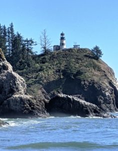 We missed the Cranberry Museum, but we drove around the tiny town of Ilwaco to check out 2 places I had considered staying because they were right on the marina. Glad we didn’t. We drove through the Port to the end of the harbor and saw the fuel port, and fish processing docks and the boat launch and crane. It was a very cool spot. From there, we headed further South into Cape Disappointment State Park, our final destination.