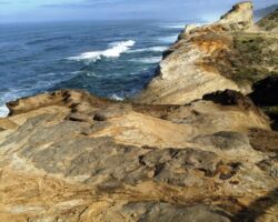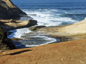 A little further South we picked up 101, and it felt like we needed to head south to meet up with the northernmost point of our last trip to connect the dots. We passed through Lincoln City with its Devils Lake which I wished we had more time to explore. We stopped at Devils Punch Bowl and look a little walk out there. We stopped at Yaquina Head Lighthouse to check it out. Our visit was brief, however, for not only was it closed, the flies were abundant and aggressive. My hunch was all the bird poop on the rocks kept them fed and healthy and multiplying.