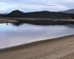 We drove back down the hill to a boat launch and wondered how far we would get if we went down the road to the Coast guard Station. We drove through the campground and along O’Neil Lake. We ended up having a beverage and sitting in the warm sun at the North jetty, looking across the vast mouth of the Columbia, back at where we had been at Fort Stevens. Just to our left was Waikiki Beach and it had quite a few people playing in the surf and dogs running about splashing in the waves. It was a great spot.