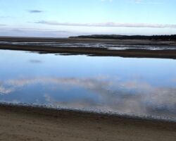 This was one of the most spectacular beaches I have ever been on. It was wide, and smooth, and flat, and clean; almost no shells or rocks, or pebbles, or stick. Very few driftwood logs had washed up and they were neatly pressed against the dune. The waves were so gently and calm; the waves were soothing in their regular beat. We couldn’t help but head down the long stretch for some time. We saw maybe 10 people at various times; mostly in 1’s, and 2’s, with one family of 4 on electric bikes.