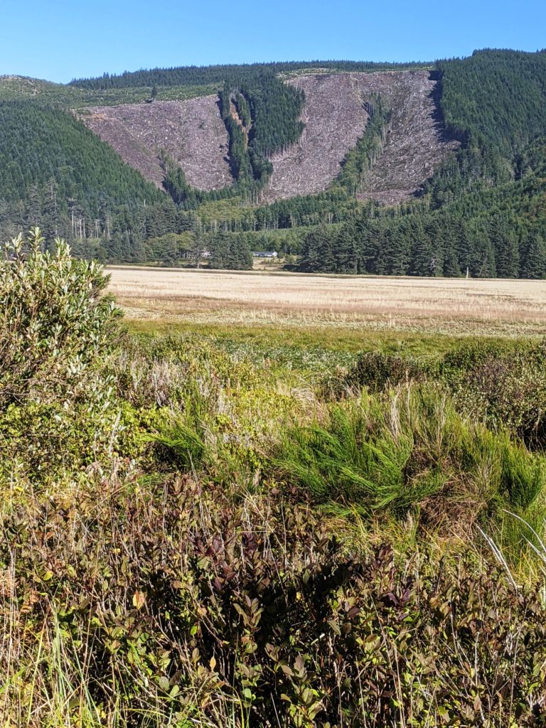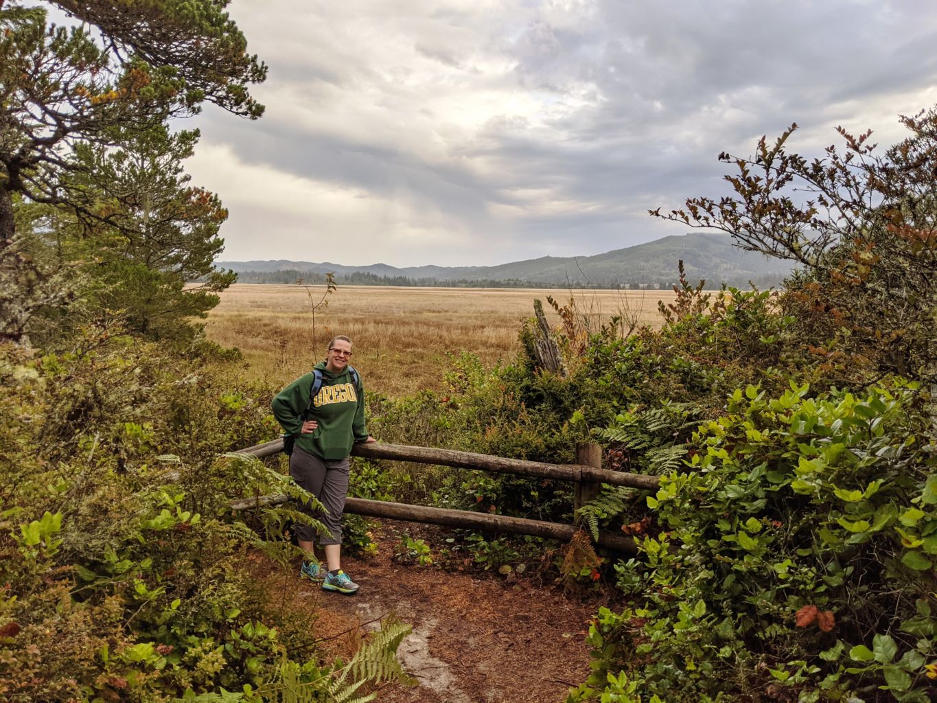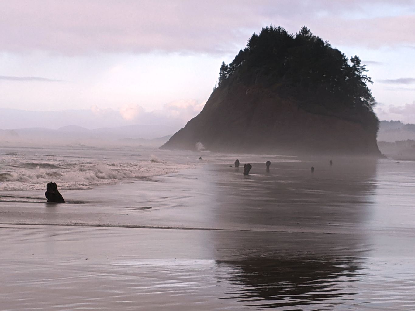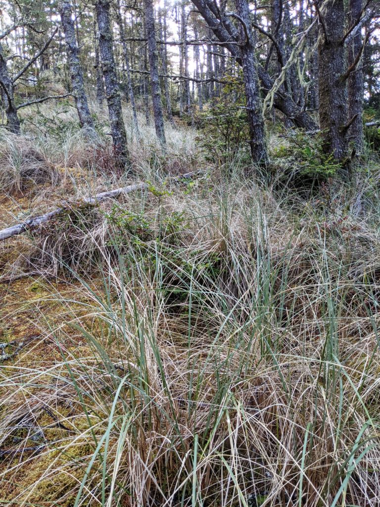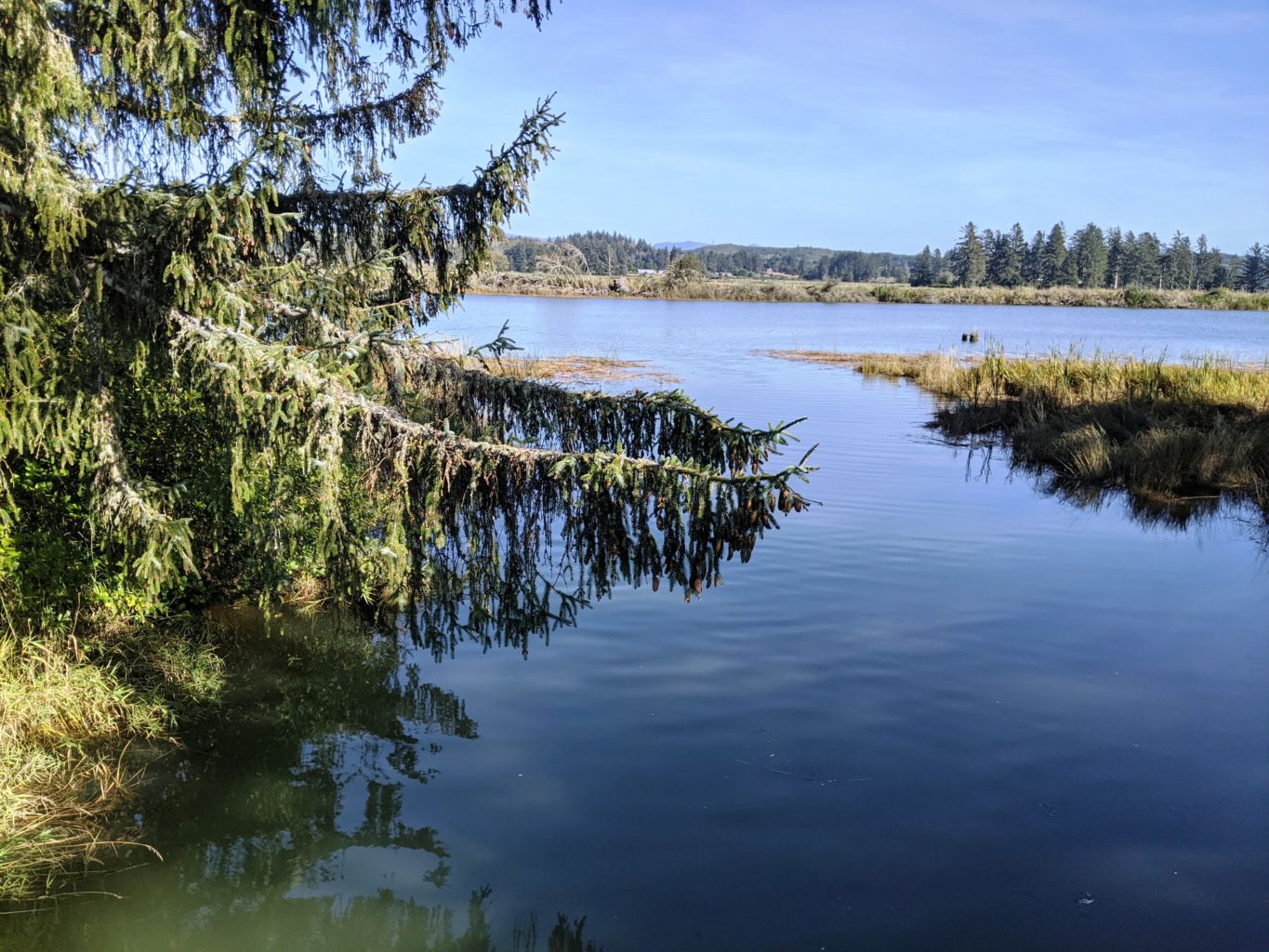 We took a nice couple mile loop trail through forest, and meadow, and finally along Sand Lake, another of those Oregon coastal oddities; uncertain if it is bay, river, marsh, wetland, estuary, all completely impacted by the tides, they are of immense beauty and tranquility, especially in the calm, cool, misty early morning. Despite not knowing if we were on a trail, or on the right path most of the time, we found our way and had a great morning stroll.
