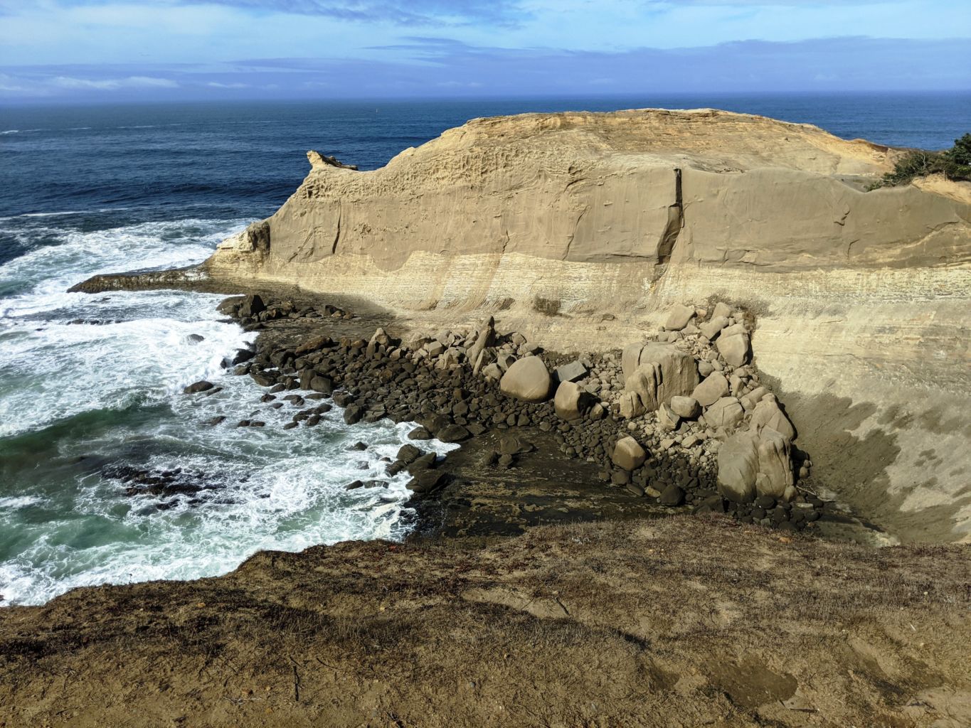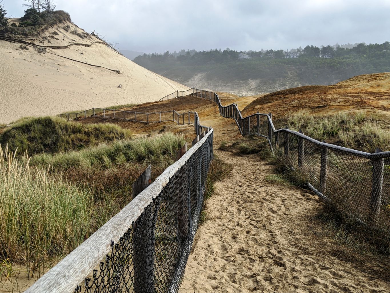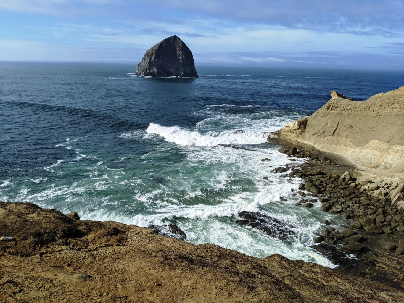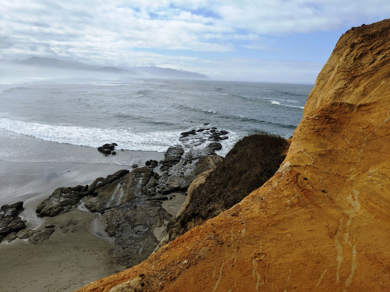 We headed to the beach and then up the massive sand dune up to a sandstone point, 1 of the 3 Capes as they call them, Kiwanda along with Lookout, and Meares. The vistas of the ocean, beach, ton, and forested mountains from up top were incredible. We lingered quite a while, waiting for the hawk to fly out of the tree, and even got to see a dory boat come in. It was a great stop.