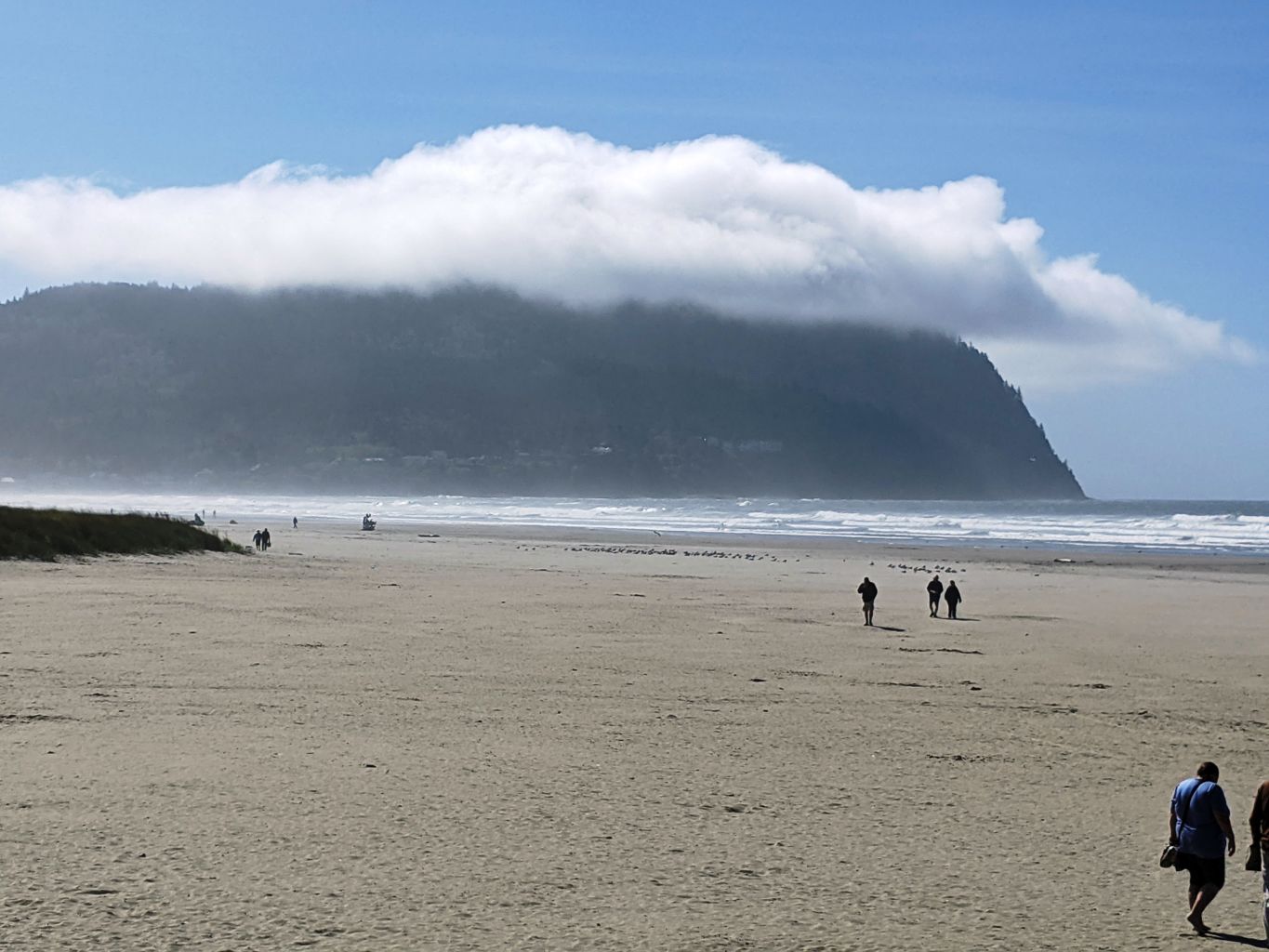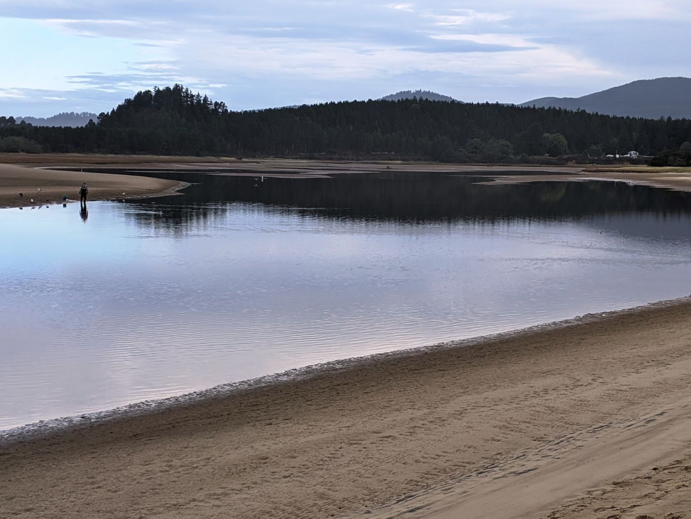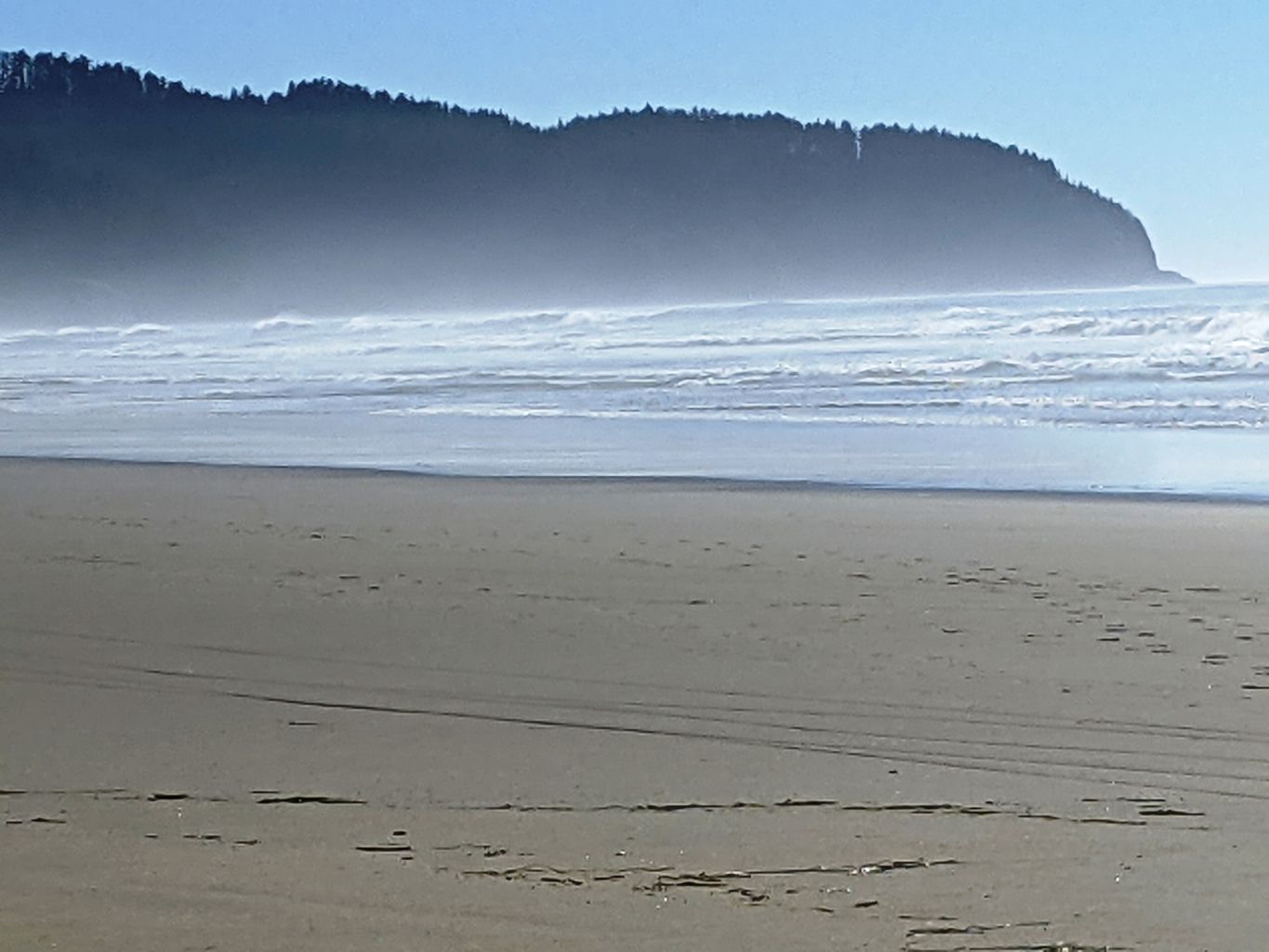 Looking at Googly now, I see this spit went for 5 miles to the mouth of Netarts Bay, just a sand strip about 500’ wide with a strip of coastal vegetation on the east side shaped like a lamb rib, super narrow at the campground end and fairly substantial by the time you get to the mouth of the bay. With the sand so fine and firm, it would have been great to get to the mouth, but that will have to wait for another day. We had a wonderful walk along the beach; a perfect re-introduction to the coast and a perfectly relaxing afternoon.