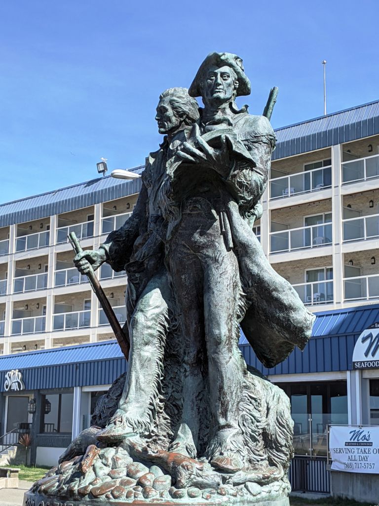 I have read Undaunted Courage and watched my share of movies and documentaries, so I was super excited to get some more historical on-the-ground context. Unfortunately, our first stop was Seaside, the Wally World of the Oregon Coast and ugly American/Euro-trash tourist bus must go. It was harsh. A carnival of crap trinkets and crap food and every form of general crap that could be sold. Allegedly, there was a statue of L&C that I wanted to see, but as with every virtual reality Disney, Studio City, Vegas, Funderland kind of altering of the senses, this statue claimed to be the “End of the Trail”, which, of course, it was not. Making haste out of this realm, we went to the nearby L&C Salt Cairn Historic Monument. It is a weird site surrounded by homes in a modern neighborhood is this 30’x30’ wrought iron fenced off display of a 4’x10’ pile of rocks with 5 copper pots on top.