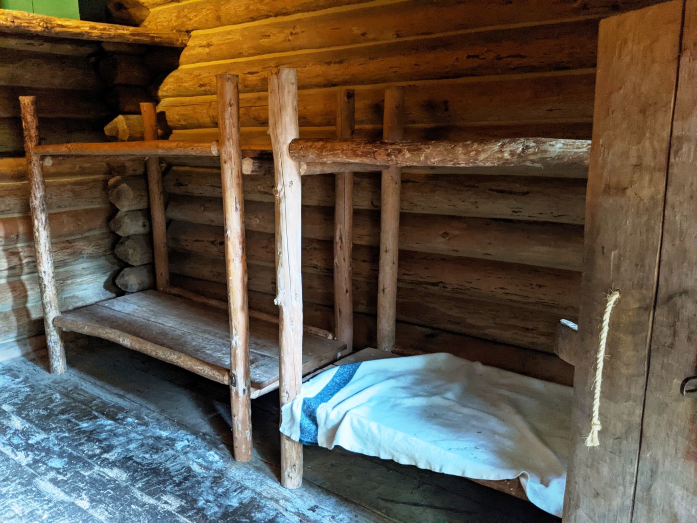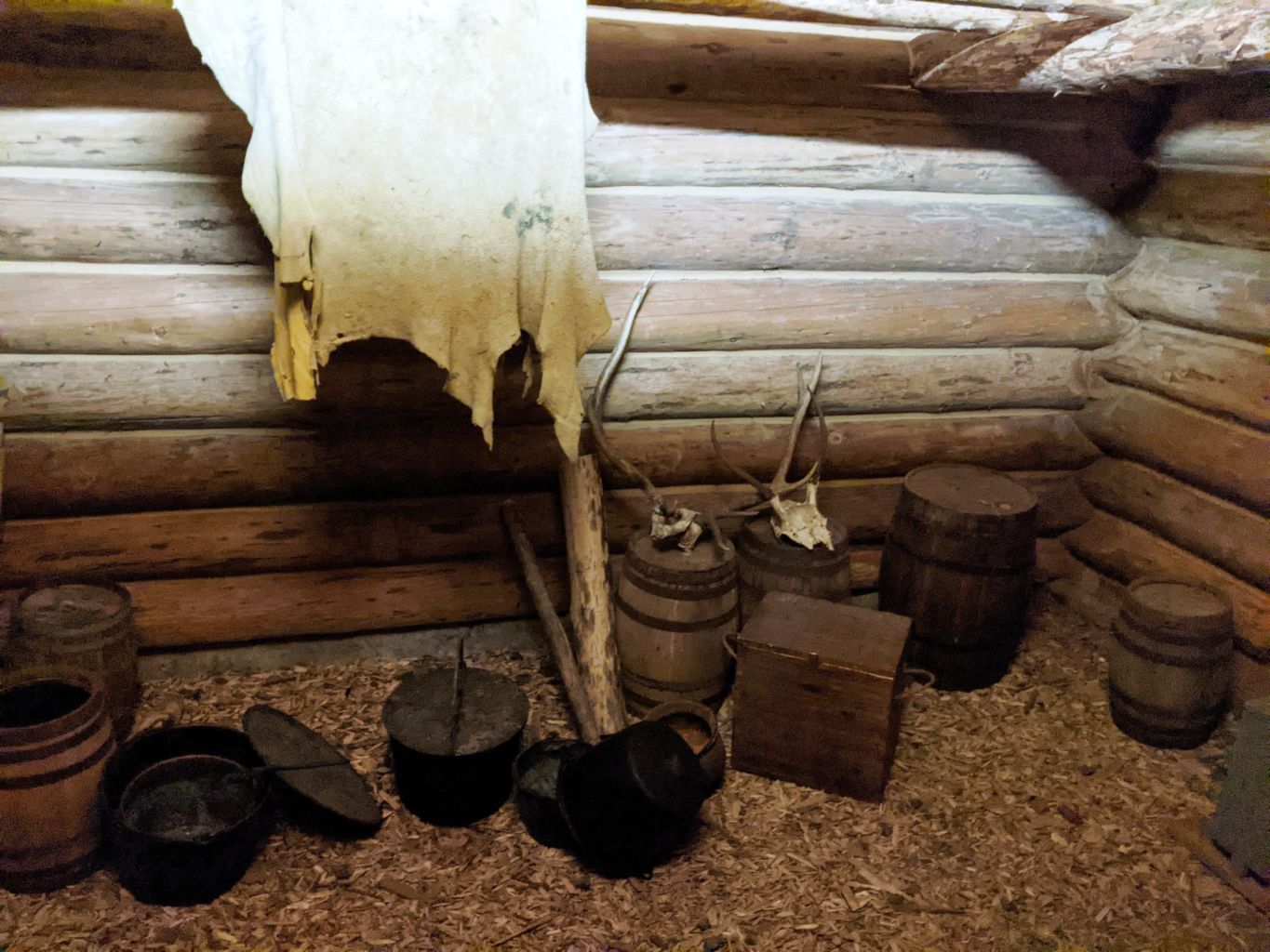 I slowly re-entered the Fort and wandered into each room. Then we walked down the trail to their canoe landing spot and I noticed, as the rangerette had mentioned, that the Fort was at the top of a hill and it was a decent down to the river’s edge. We could imagine the canoes being pulled up onto shore and the supplies being hauled up the hill. It was a real nice scene.
