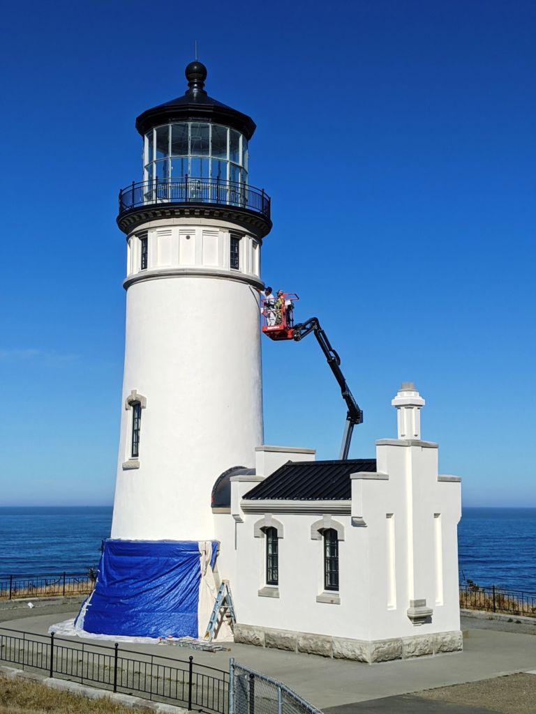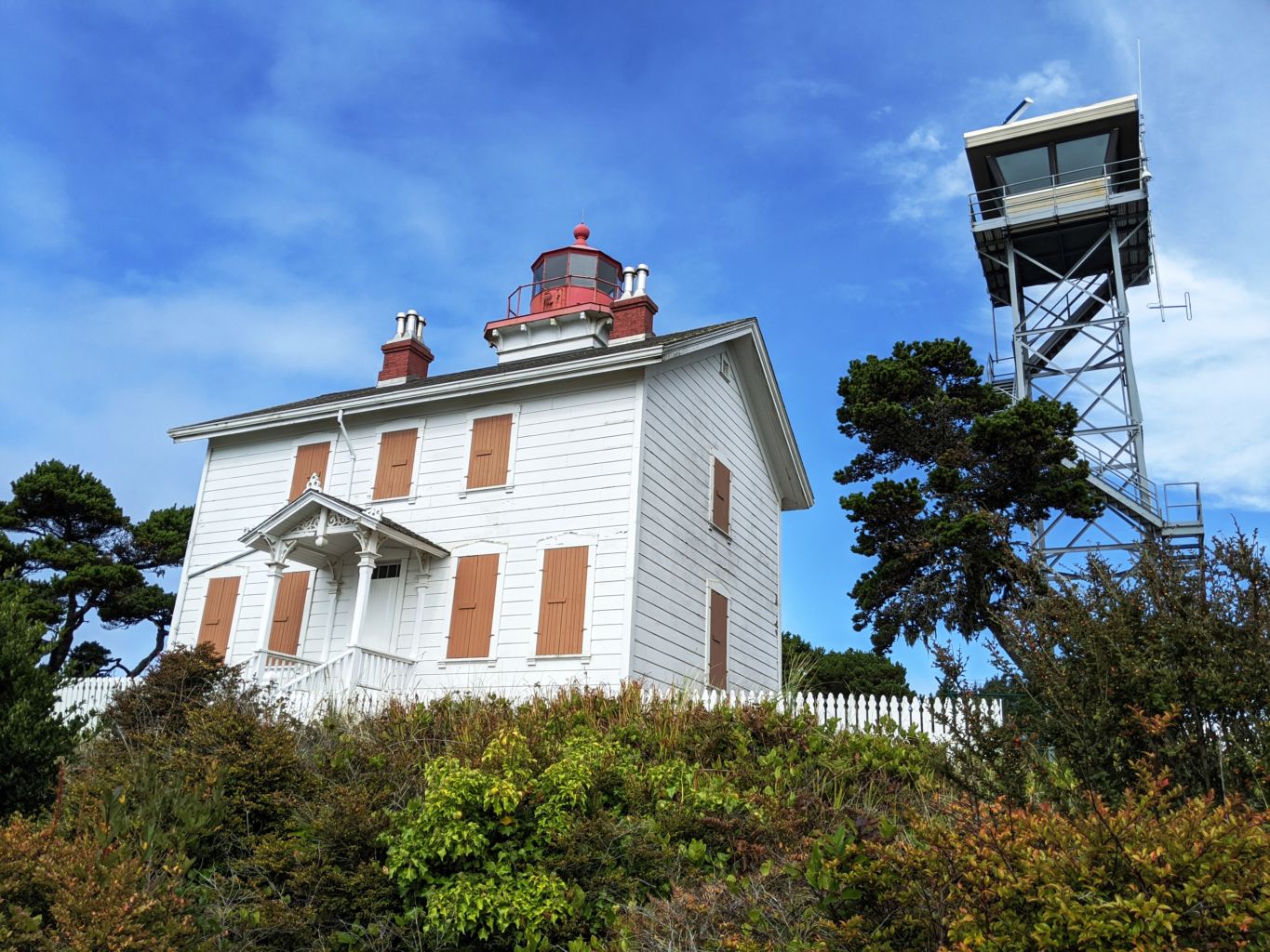 We talked and laughed with her for quite a while and in so doing, learned this was the only lighthouse on the Oregon coast that is made of wood, and that has the living quarters and the light in the same building. Next to it stood an electronic beacon tower that we learned is continuously staffed by the US Coast Guard, the modern day version of our antiquated lighthouse system, although not a whole lot different considering a couple people are still sitting up in a tower on a bluff staring out to sea.
