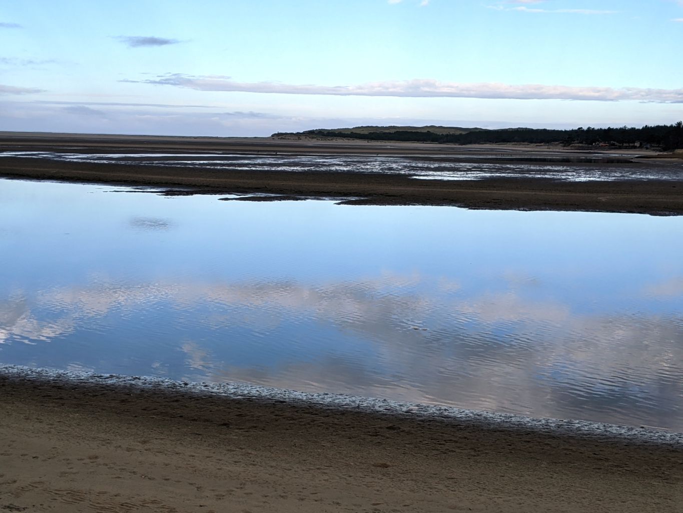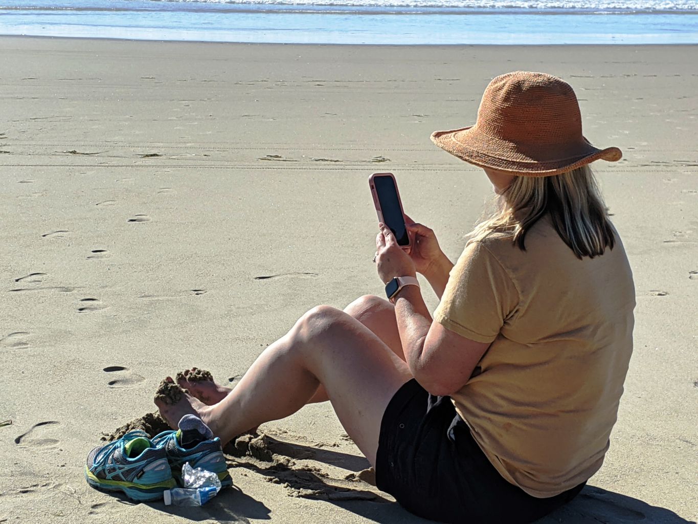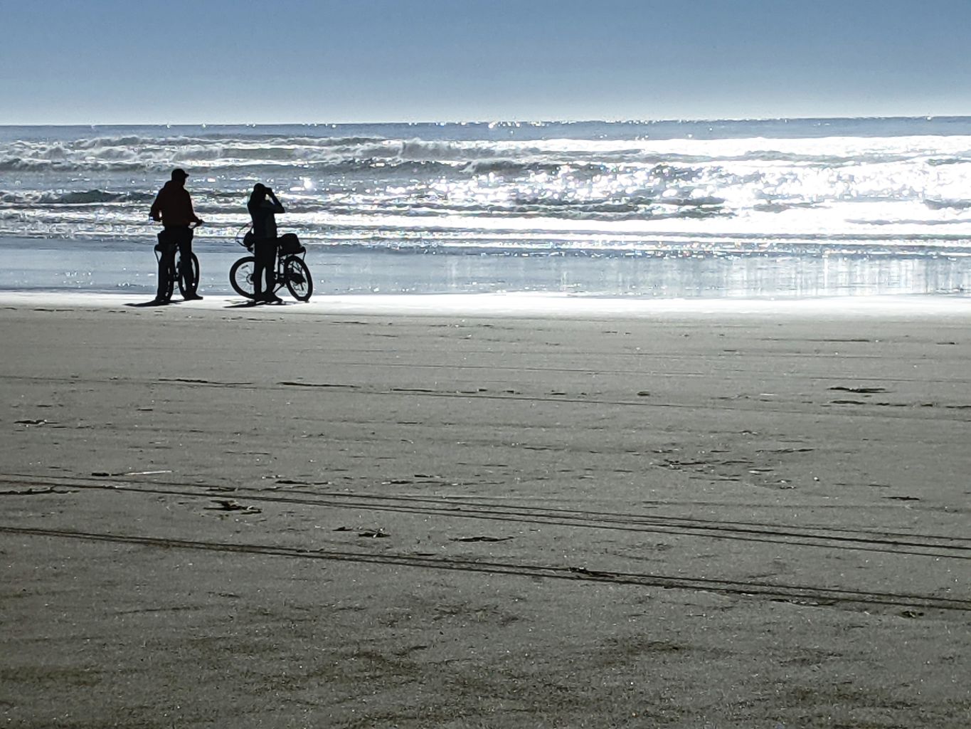 This was one of the most spectacular beaches I have ever been on. It was wide, and smooth, and flat, and clean; almost no shells or rocks, or pebbles, or stick. Very few driftwood logs had washed up and they were neatly pressed against the dune. The waves were so gently and calm; the waves were soothing in their regular beat. We couldn’t help but head down the long stretch for some time. We saw maybe 10 people at various times; mostly in 1’s, and 2’s, with one family of 4 on electric bikes.