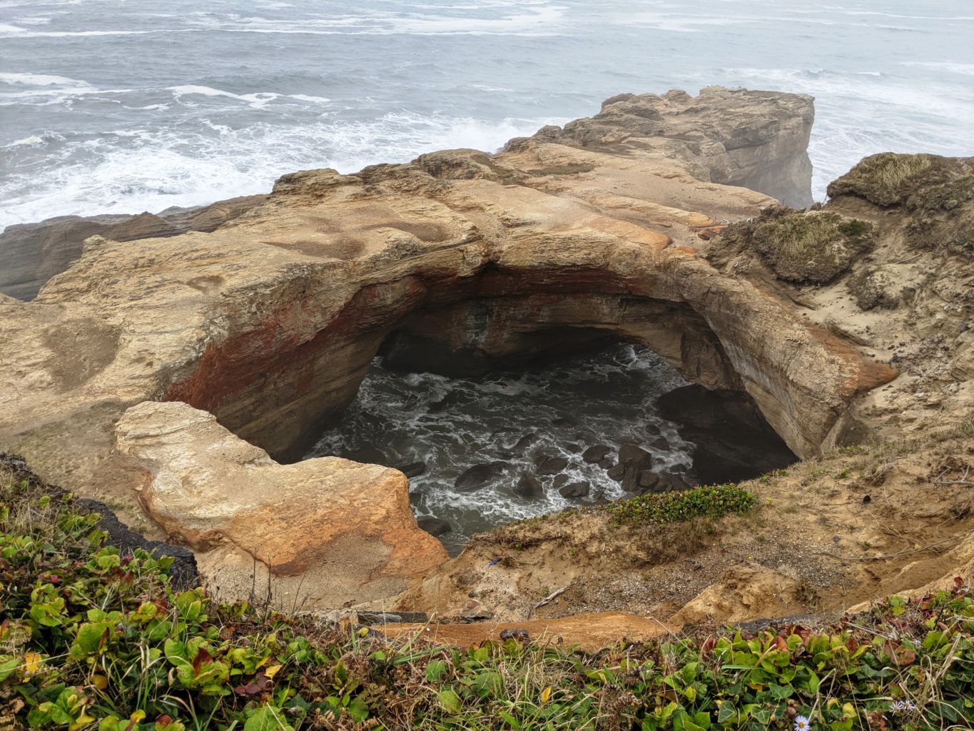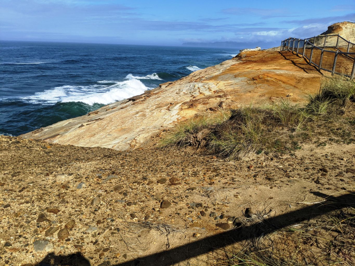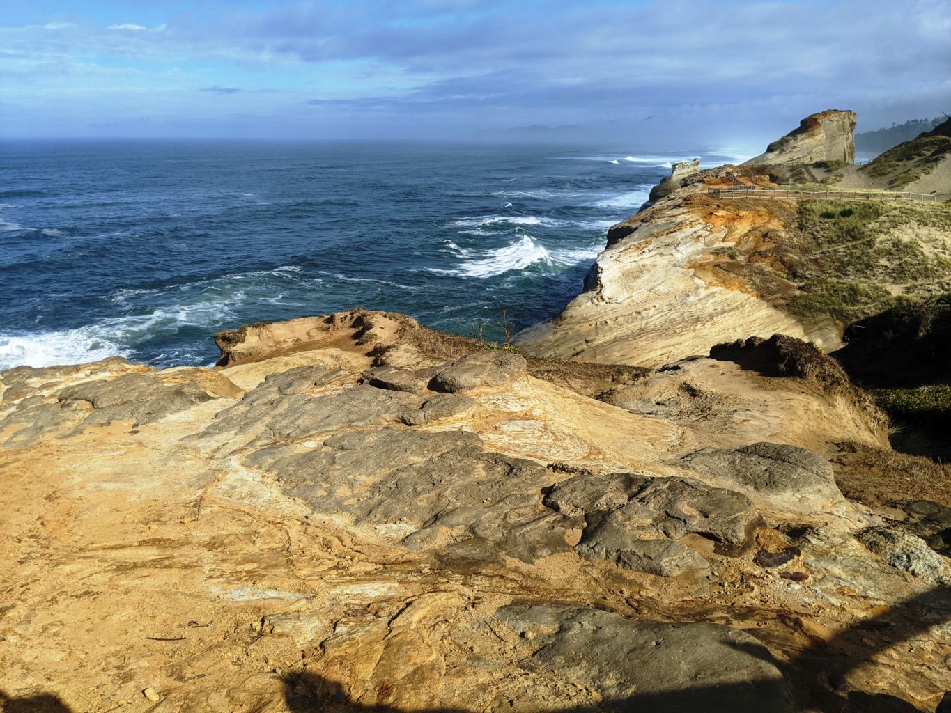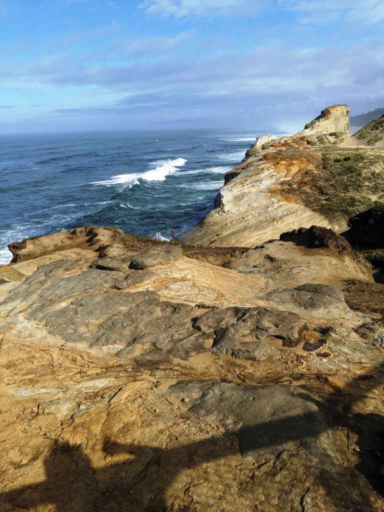 A little further South we picked up 101, and it felt like we needed to head south to meet up with the northernmost point of our last trip to connect the dots. We passed through Lincoln City with its Devils Lake which I wished we had more time to explore. We stopped at Devils Punch Bowl and look a little walk out there. We stopped at Yaquina Head Lighthouse to check it out. Our visit was brief, however, for not only was it closed, the flies were abundant and aggressive. My hunch was all the bird poop on the rocks kept them fed and healthy and multiplying.